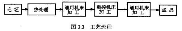 數(shù)控工藝路線設(shè)計是下一步工序設(shè)計的基礎(chǔ),其設(shè)計的質(zhì)量會直接影響零件的加工質(zhì)量與生產(chǎn)效率。設(shè)計工藝路線時應對零件圖、毛坯圖認真分析,結(jié)合數(shù)控加工的特點靈活運用普通加工工藝的一般原則,盡量把數(shù)控加工工藝路線設(shè)計得合理一些。因此,在工藝路線設(shè)計中一定要注意到,由于數(shù)控加工工序一般都穿插于零件加工的整個工藝過程中,因而要與其他加工工藝銜接好,常見的工藝流程如圖3.3所示。