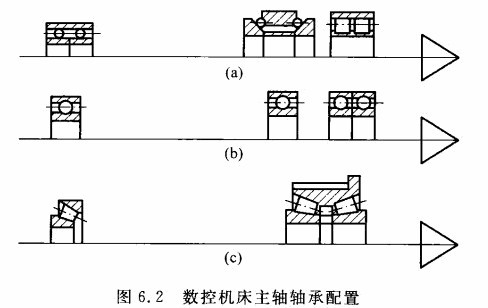 (3)前支承采用雙列圓錐滾子軸承,后支承為單列圓錐滾子軸承,見(jiàn)圖6.2(c)。這組軸承徑向和軸向剛度高,能承受重載荷,尤其能承受較強(qiáng)的動(dòng)載荷,安裝與調(diào)整性能好;但是這種方式限制了主軸的最高轉(zhuǎn)速和可以達(dá)到的精度,因此適用于中等精度、低速與重載的數(shù)控沖床主軸。