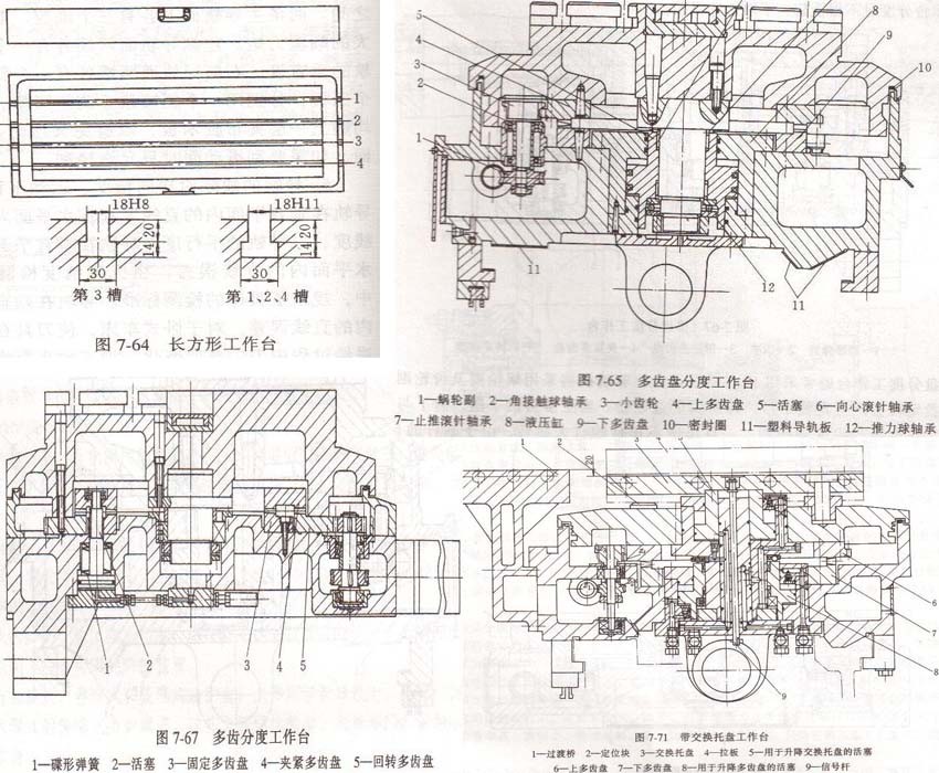 1、分度工作臺(tái) 圖7 65為臥式加工中心多齒盤分度工作臺(tái)結(jié)構(gòu)。