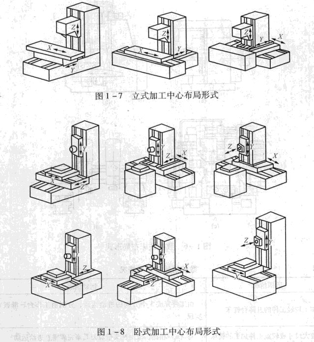 如圖1-8所示,臥式加工中心通常采用立柱移動式,T形床身。一體式T形床身的剛度和精度保持性較好,但其鑄造和加工工藝性差。分離式T形床身的鑄造和加工工藝性較好,但是必須在連接部位用大螺栓緊固,以保證其剛度和精度。